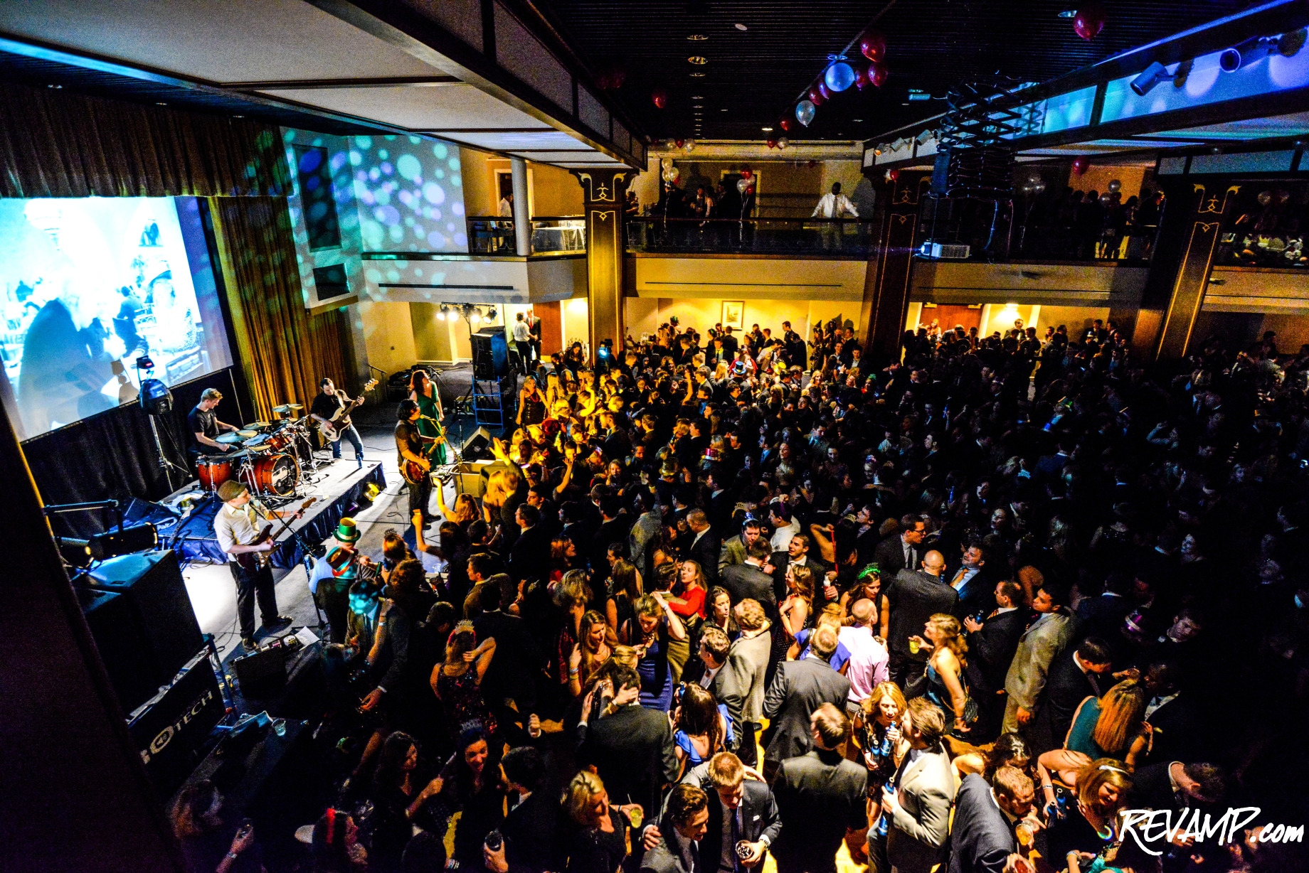Popular D.C.-based live '90s cover band White Ford Bronco was enlisted to energize the crowd inside the venue's massive 7,000-squarefoot Grand Ballroom, with DJ Ricky Schramm soon following on-stage after midnight.